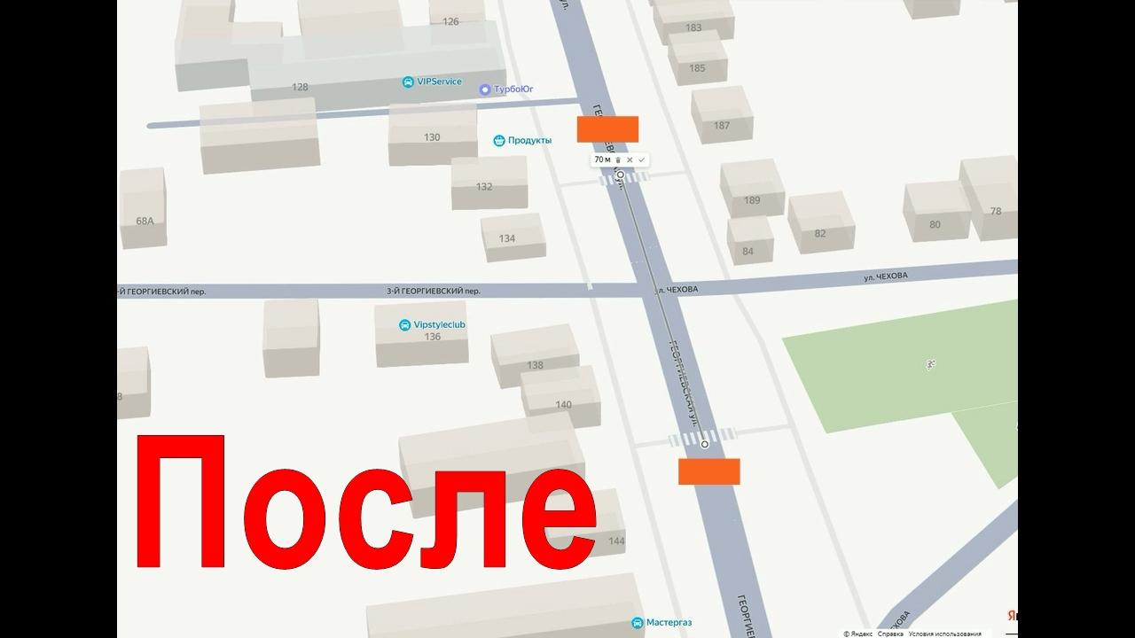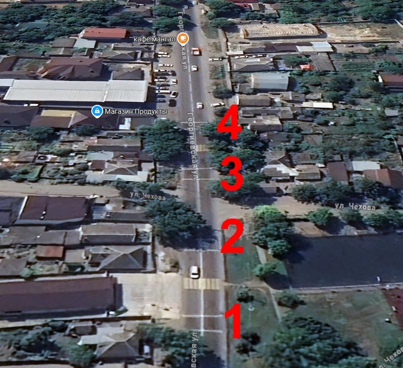 На улице Георгиевской в районе пересечения с улицей Чехова на расстоянии 70 метров друг от друга расположены два пешеходных перехода (далее ПП). Перед каждым ПП возведены по две искусственные неровности (далее ИН).