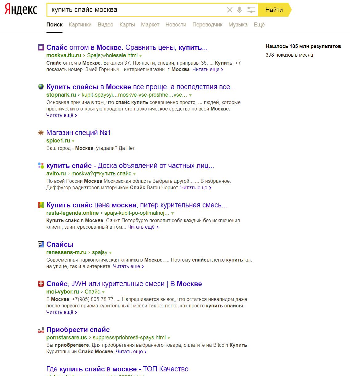 Для того, чтобы приобрести вещества, отнесенные к наркотическим средствам и запрещенные для применения, достаточно набрать в любой поисковой системе название этого вещества и название своего города. В выдаче результатов поиска по этой фразе имеется множество действующих нелегальных интернет магазинов.