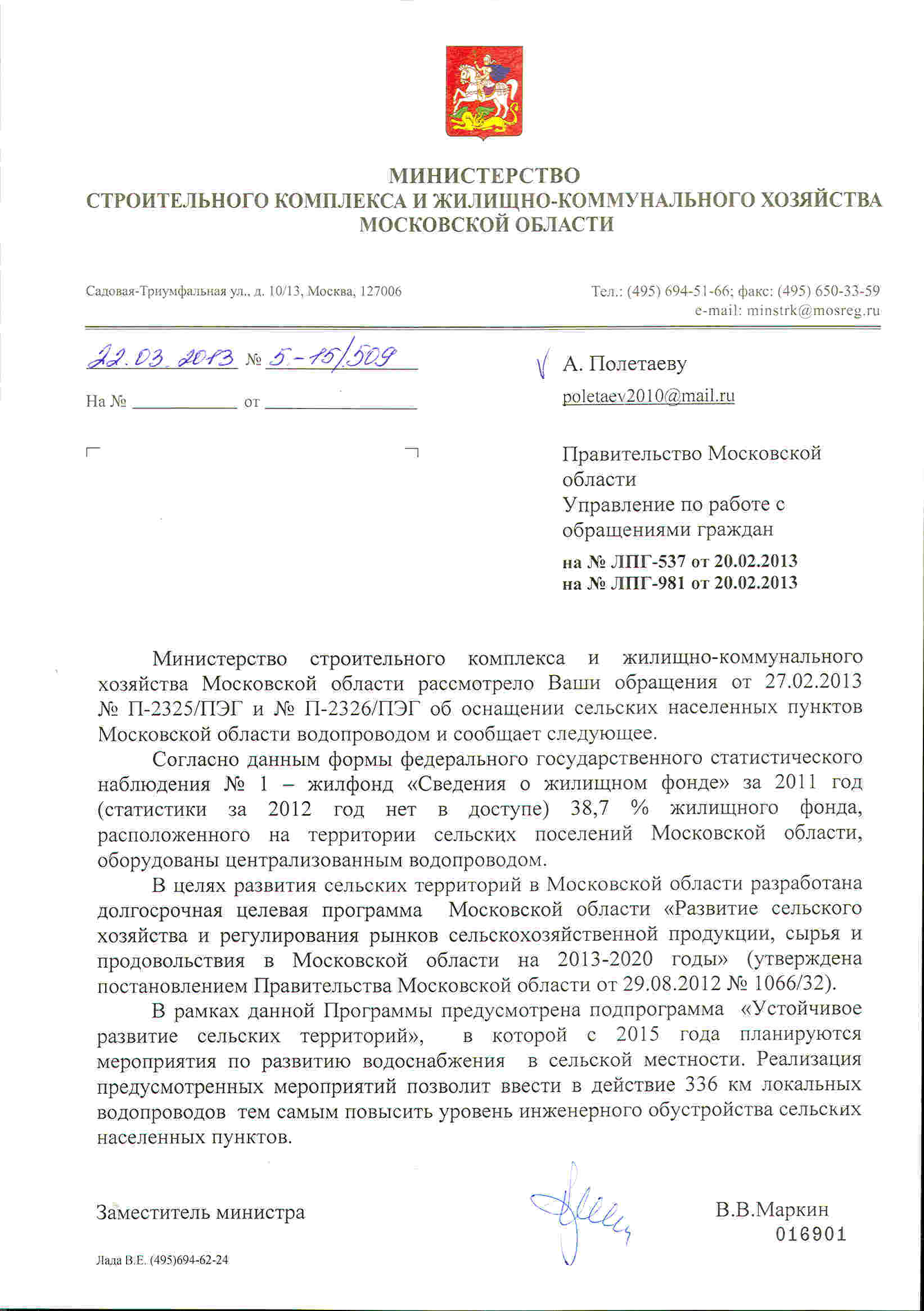 По официальным данным только 38,7% жилого фонда сельских поселений Московской области имеют водопровод. Разве можно нормально жить в 21 веке без водопровода? Необходима комплексная программа по оснащению жилого фонда сельских населенных пунктов водопроводом. Целью программы должно быть 100% оснащение водопроводом населенных пунктов за конечный промежуток времени. Не просто километры построить, а все населенные пункты должны иметь водопровод. Жить без водопровода - это же уровень дикости, когда же мы его преодолеем? Без государственного финансирования невозможно преодолеть качественное изменение инженерной структуры населенных пунктов. В XX веке во всех населенных пунктах появилось электричество, благодаря государственному финансированию и организации. Поэтому, только государственная программа может решить эту проблему.